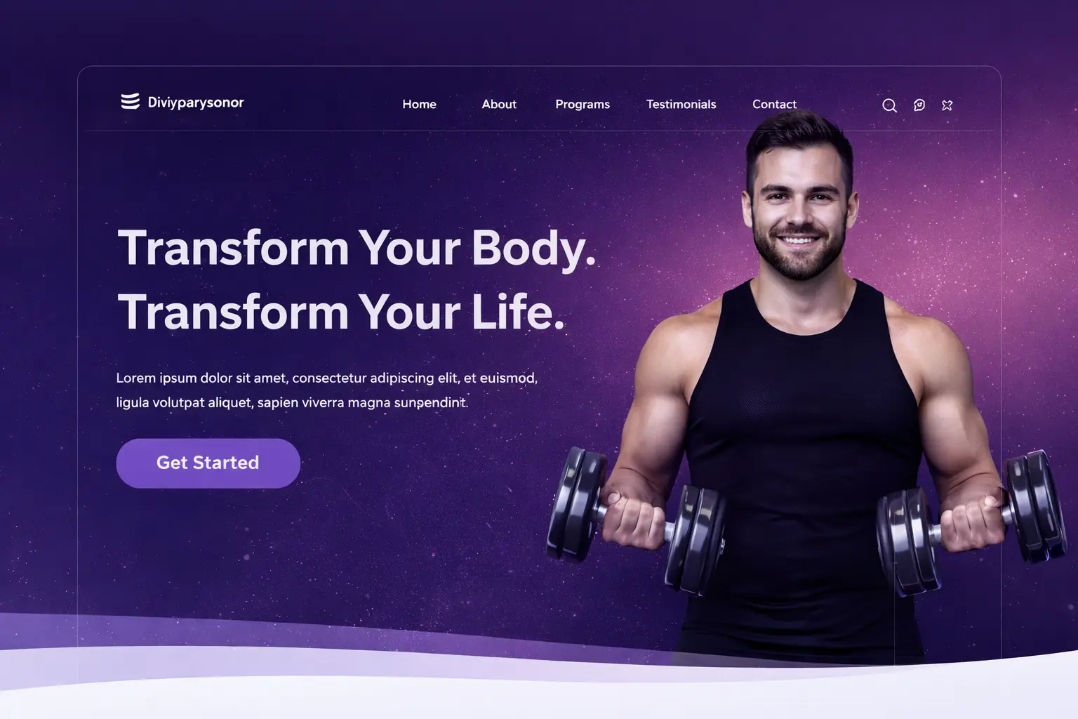 Modern fitness Divi template for gyms and trainers, fully responsive and conversion-focused.